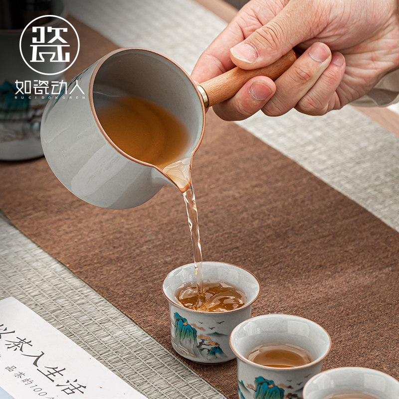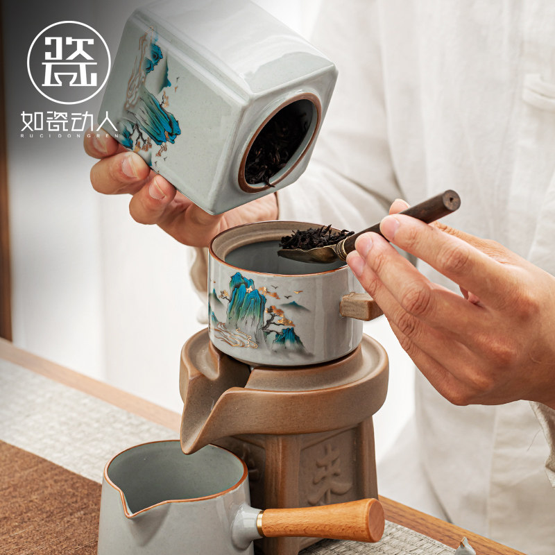 Such as porcelain touching imitation ancient landscape automatic utiliturism tea with suit home office will living-room anti-scalding tea deity-Taobao