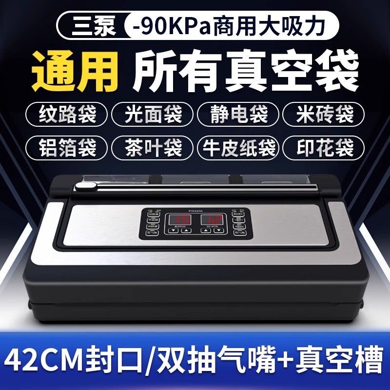 PW420A not pick bag three pumps 42 cm 8mm seal double suction nozzle PW300 not pick bag vacuum machine seal width 30 cm 6mmP350A universal glossy surface bag seal width