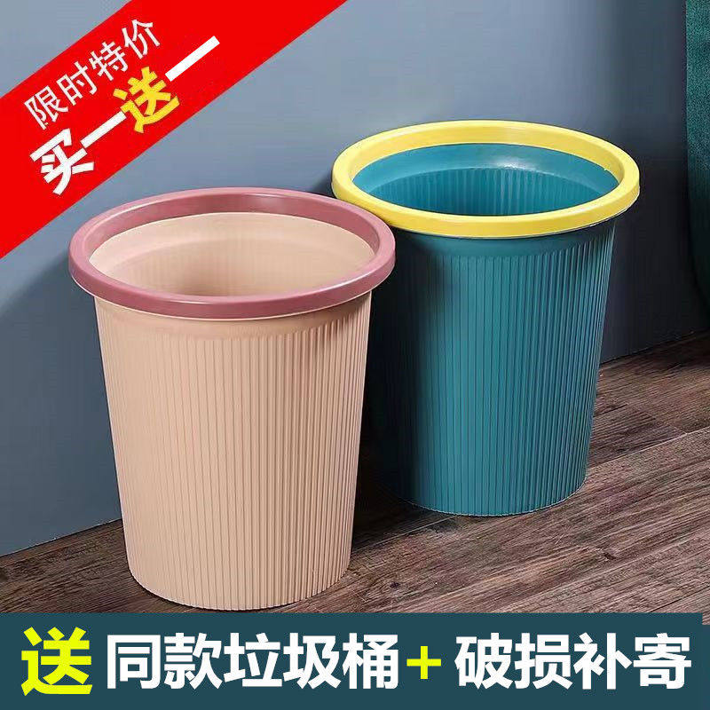 (Buy one send two) Press Circle Trash Can Living Room Kitchen Toilet Dorm Room Large Capacity Wastepaper Trash Can Home-Taobao