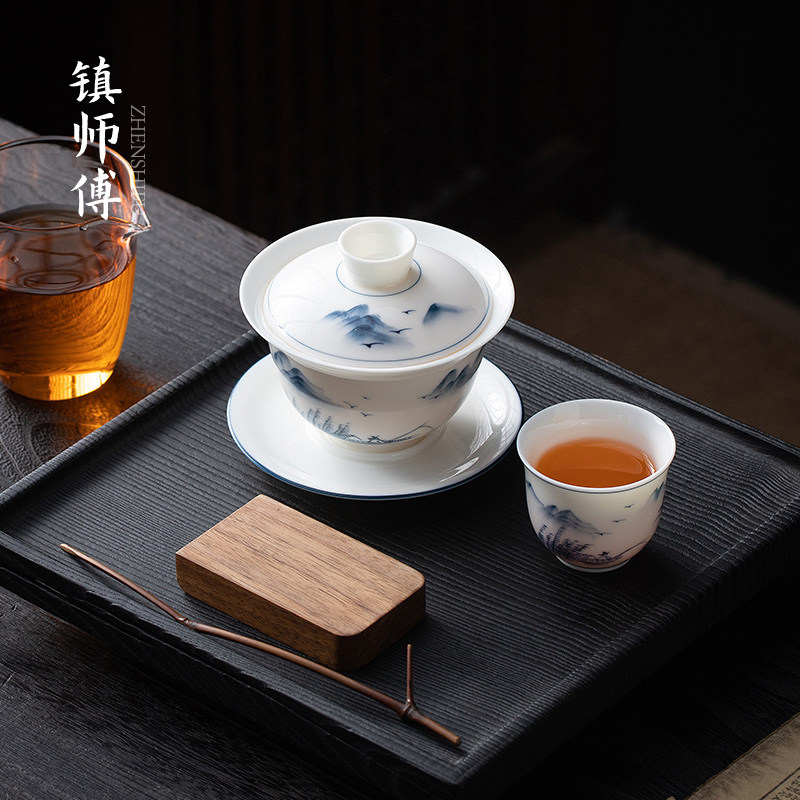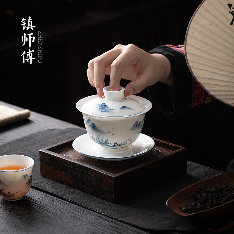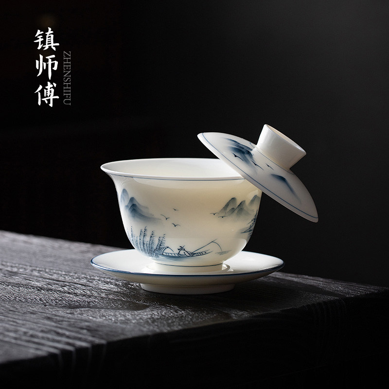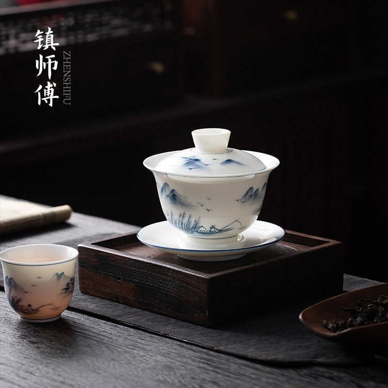 Hand Painted Hover Cover Bowl - (lake light Mountain Color) Jane Painted Hover Cover Bowl - (Lake Light Mountain Color cover Cups Cups 1) Jane's hand painted hovering lid bowl - (Lake light Mountain Color cover Cup Cup 2) Jane