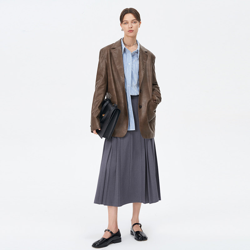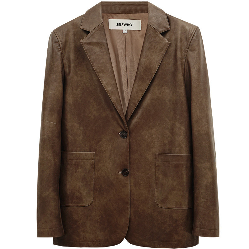 (Stars Same) Self Who Maillard pu leather jacket woman gush brown American retro design sensation-Taobao
