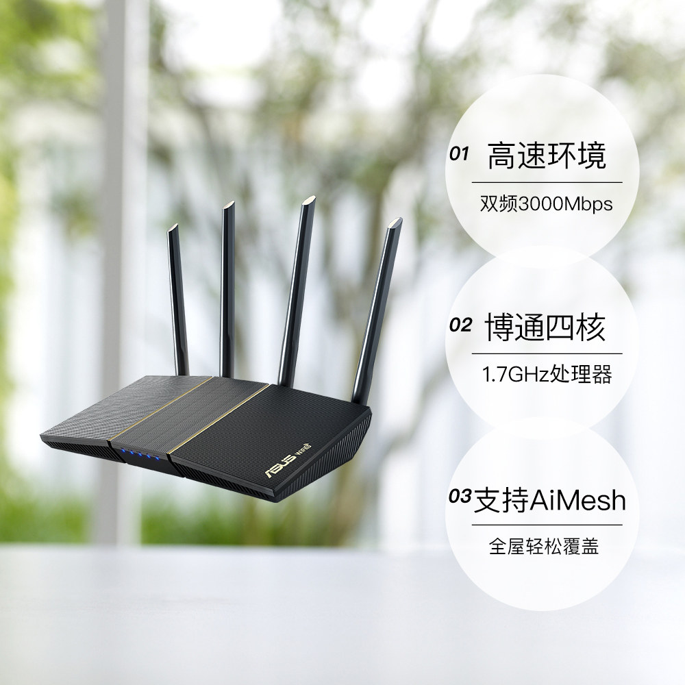 (self-employed) (ten billion subsidy) SUSTech RT-AX57 Wireless Road router Dual-frequency high-speed wifi6 Home one thousand trillion Port Dormitory Dorm Room Black Gold 3000M Table ride good