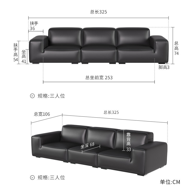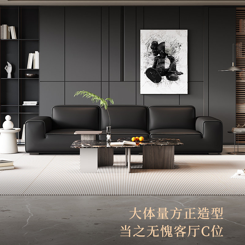 Gu Home Fancy Minimalist high-end full real leather sofa Large Black Bull Head Layer Cow Leather Light Luxury Sofa 1192-Taobao