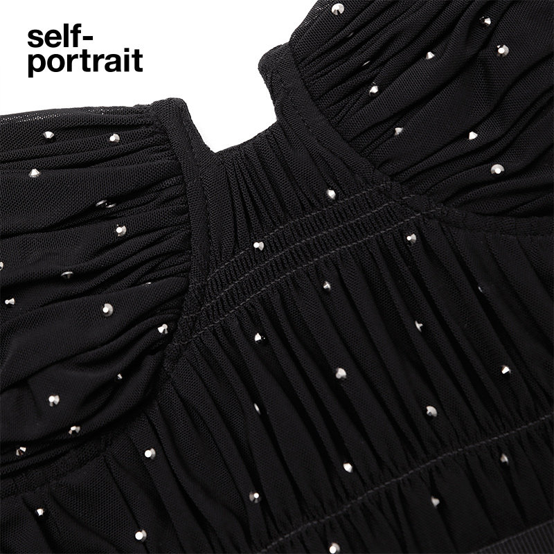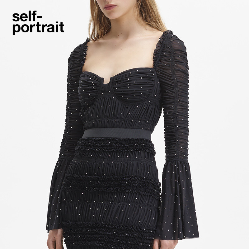 self-portrait 2023 autumn winter classic black elegant and delicate square neckline long sleeve long dress-Taobao