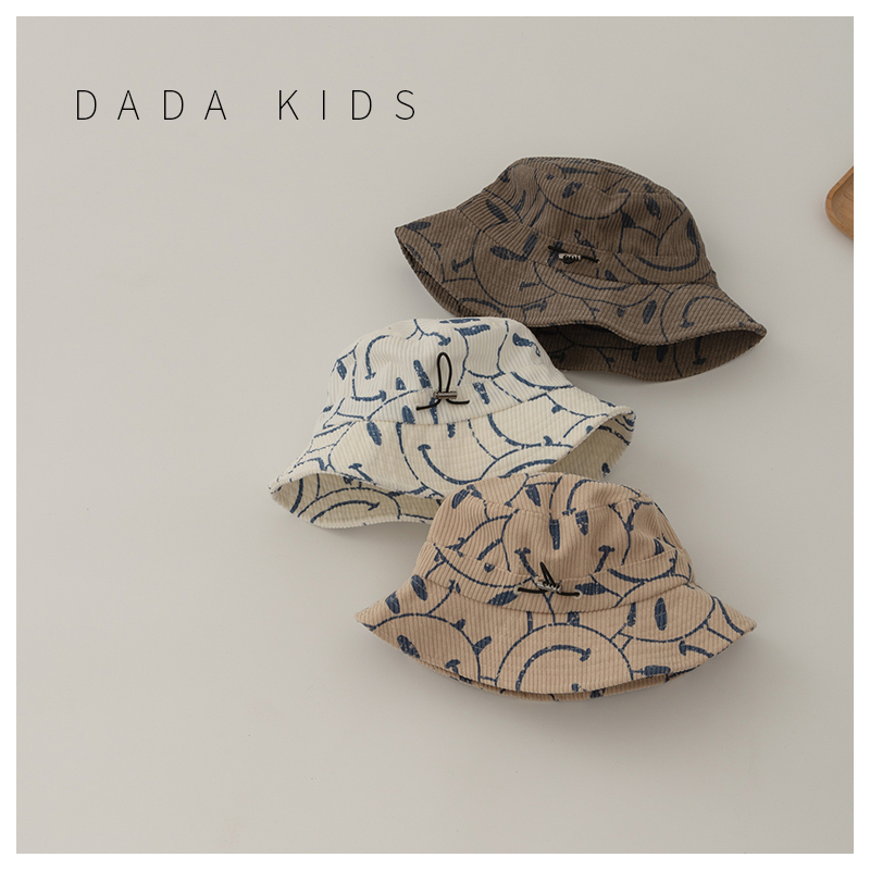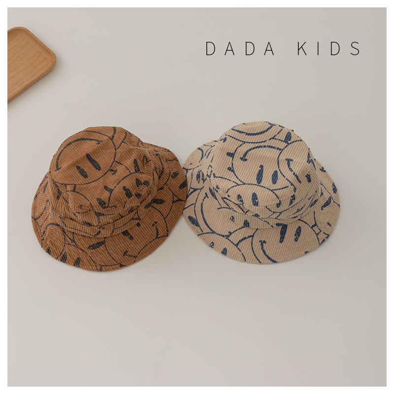 Han Department Children's fisherman's hat autumn winter boy light core suede warm hat girl baby personality print laughs face basin cap tide-Taobao