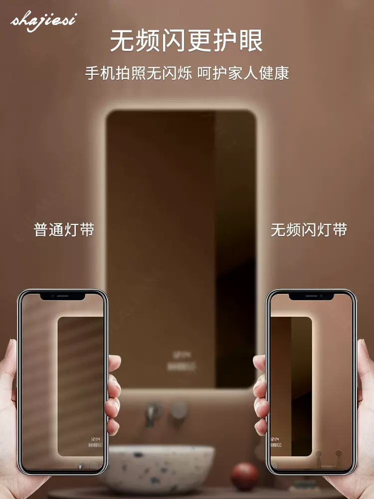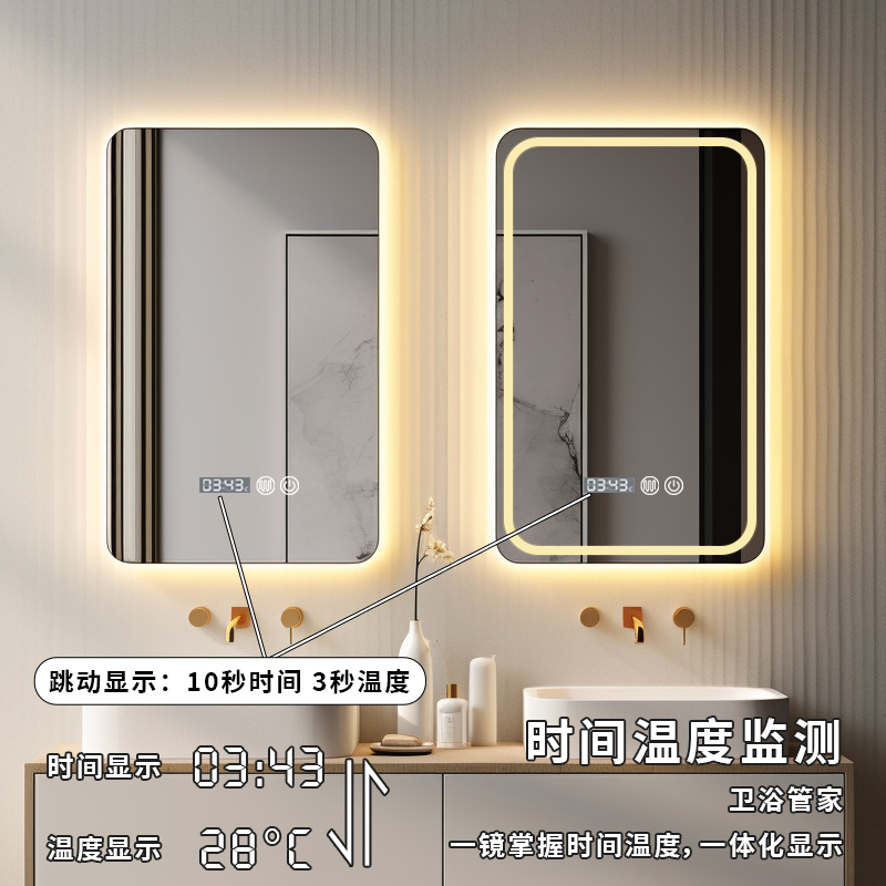 Square smart mirror hanging wall-style toilet bathroom mirror makeup with lamp led anti-fog touch screen luminous wall-mounted-Taobao