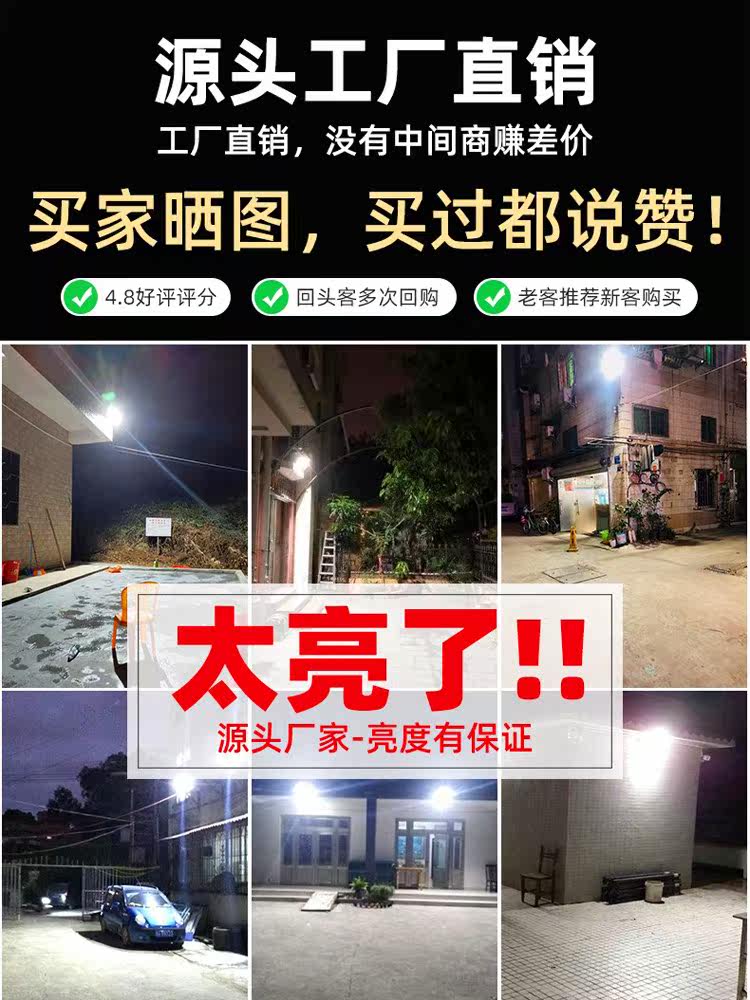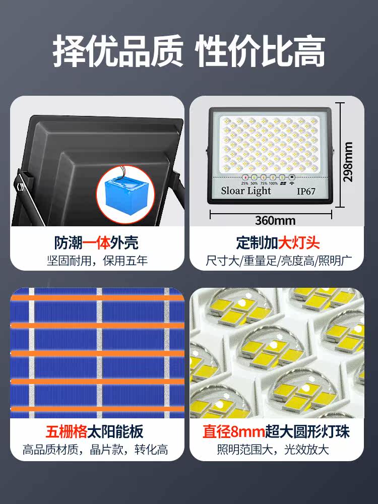 Home Outdoor Yard Lights Led Waterproof Floodlights Lighting Solar Power Panels 220v Home Complete Street Lights-Taobao