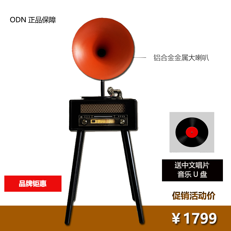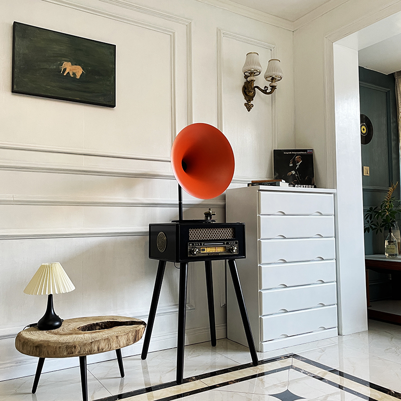 Autino's modern French style European-style retro sound machine electric vocalist Bluetooth sound big-horn black gel record machine-Taobao
