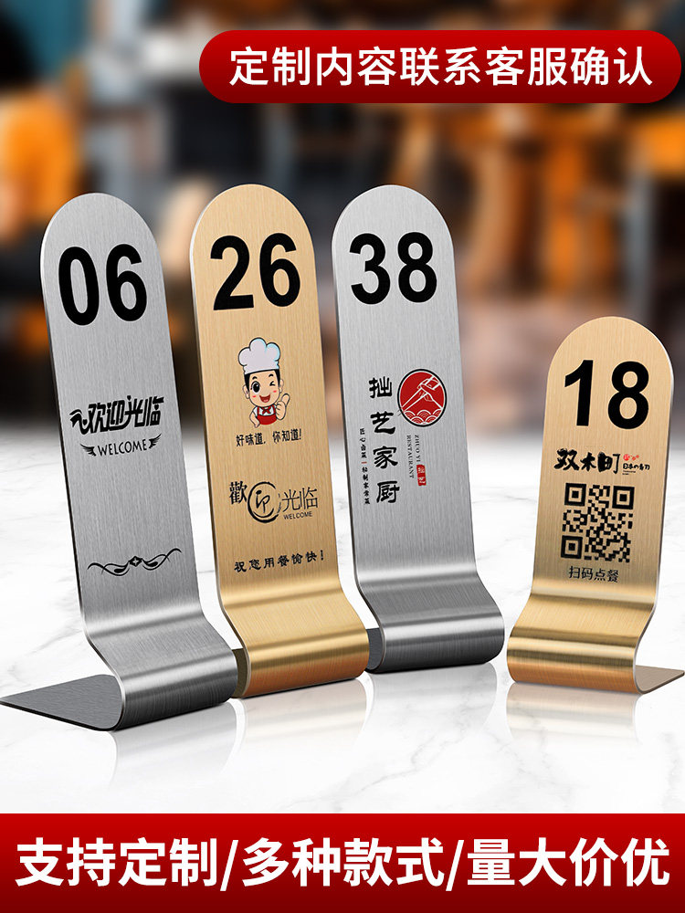 High-end stainless steel dining number plate Custom Creative order Restaurant hotel already booked for reservation seats Seating Stand Hotel Standing Two-Dimensional 2-2 Meal Showcase number Dining Table Plate Number-Taobao-Taobao