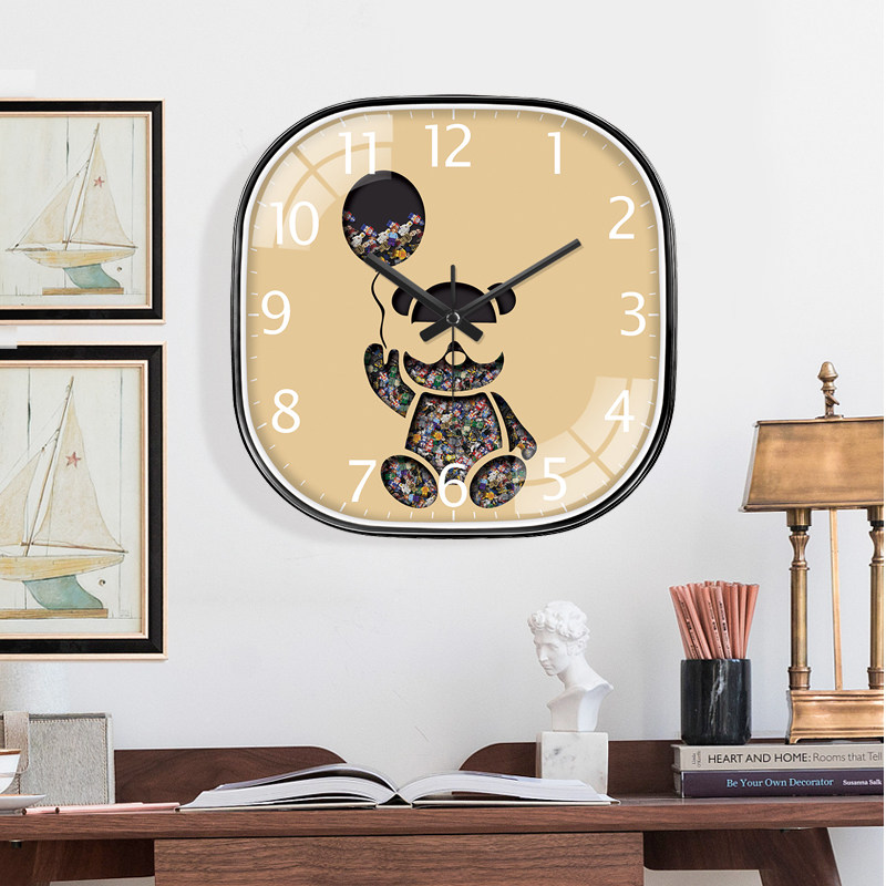Square hanging clock Living room Bedroom Watch Light Extravagant Bears Modern Children's House Cartoon Creative Clock 2023 New-Taobao