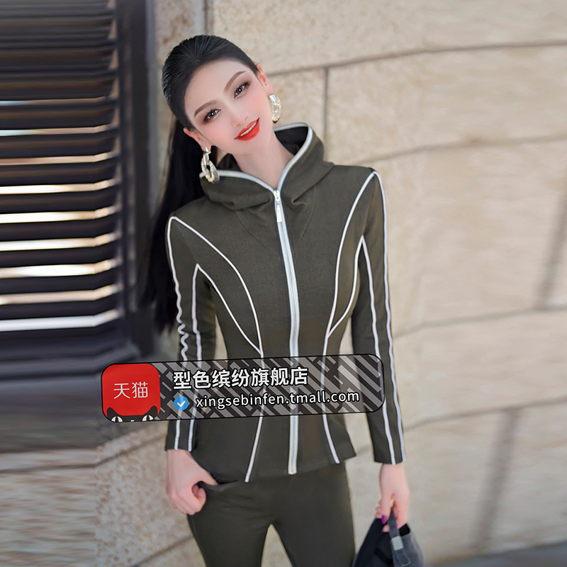 Fall Fashion Lady Casual Sports Suit 2023 New Temperament Even Cap Jacket Microhorn Pants Two Sets-Taobao