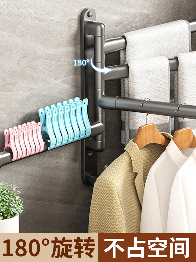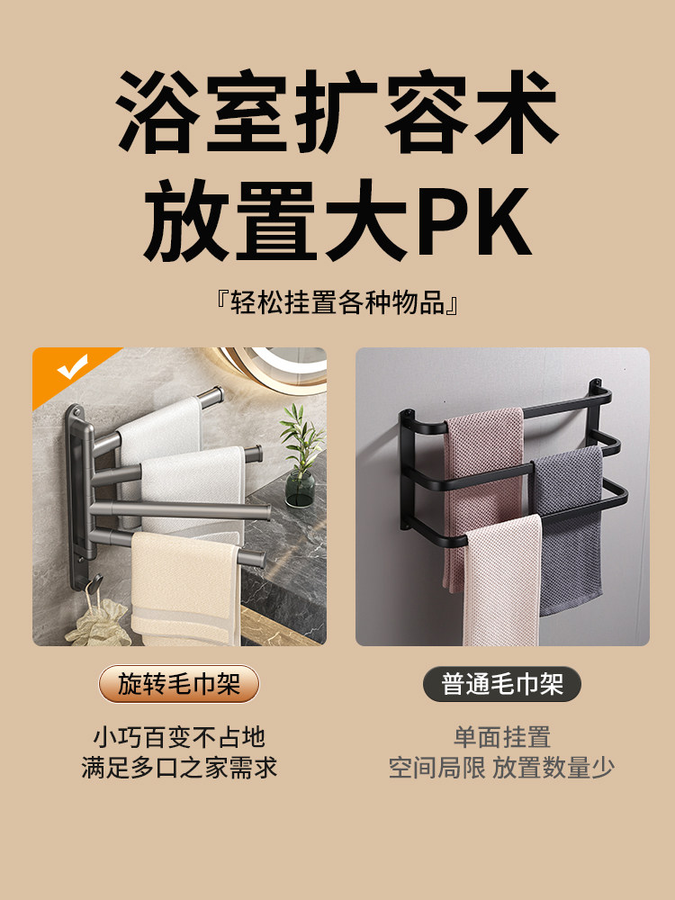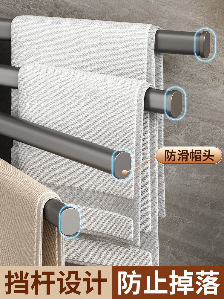 Gun Grey Rotating towel rack free of punching toilet shelving rack towel rod bathroom hanging towel rack 873-Taobao