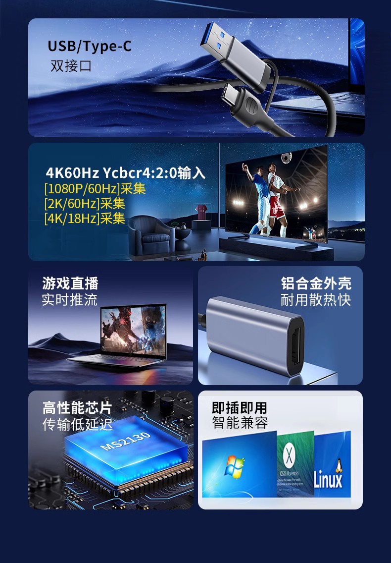 It's all new firmware MS2130 collecting card common HDMI wire collecting card HDMI thin wire collecting card HDMI thin wire hot boot bracket collecting card HD wire camera