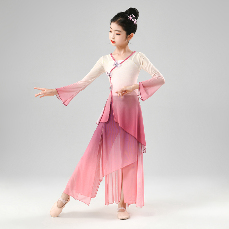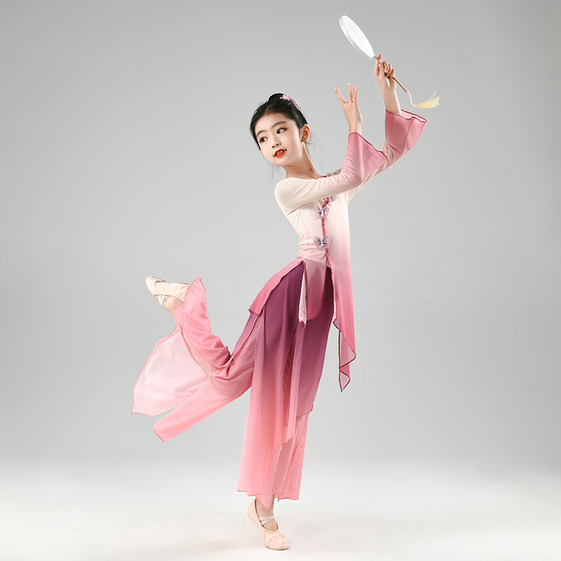 Classical Children Dance Exercises with less children to perform in Chinese Wind Costume Red Girl Body Rhyme clothes flutter-Taobao