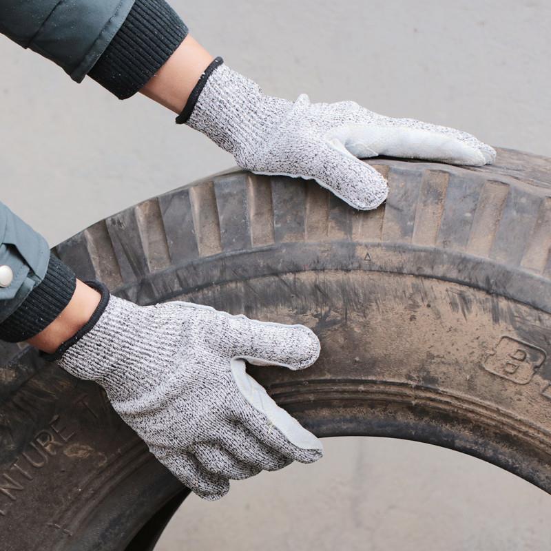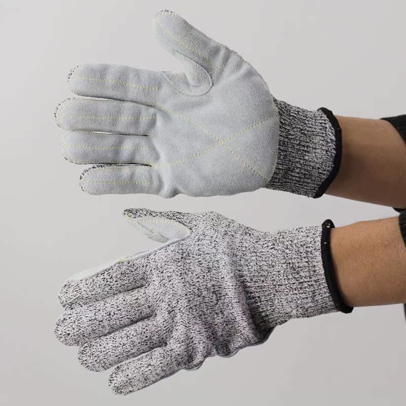 Spot HPPE anti-cut 5-level tiger's mouth reinforced reinforcement wear-resistant cowhide skin anti-cut protection anti-stab gloves