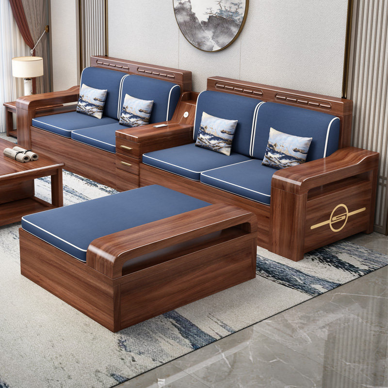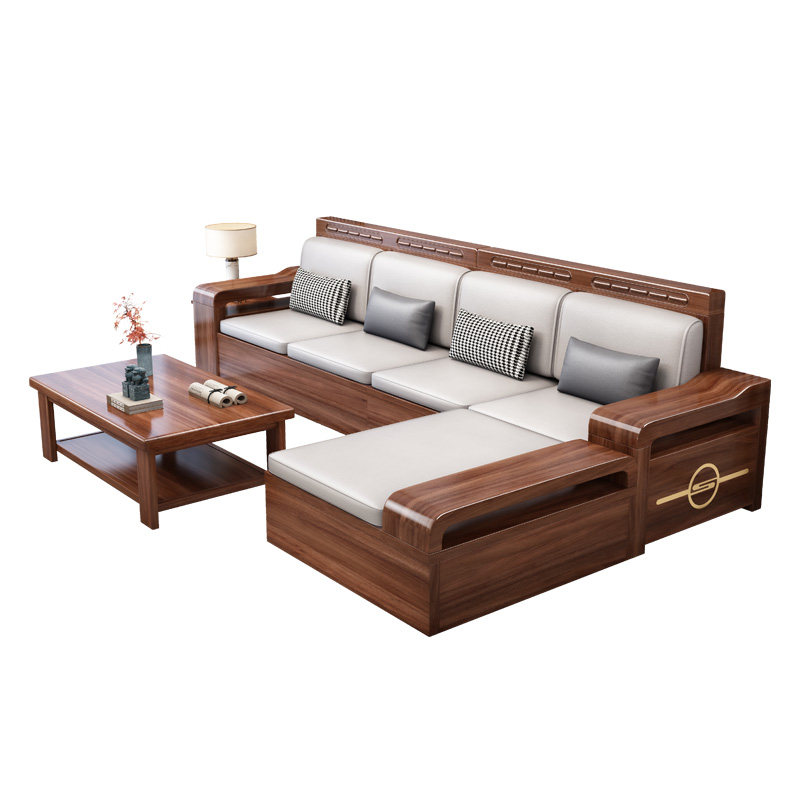 Chinese style light lavish walnut wood solid wood sofa combined small family type winter and summer dual-use storage corner wood sofa Economy type-Taobao