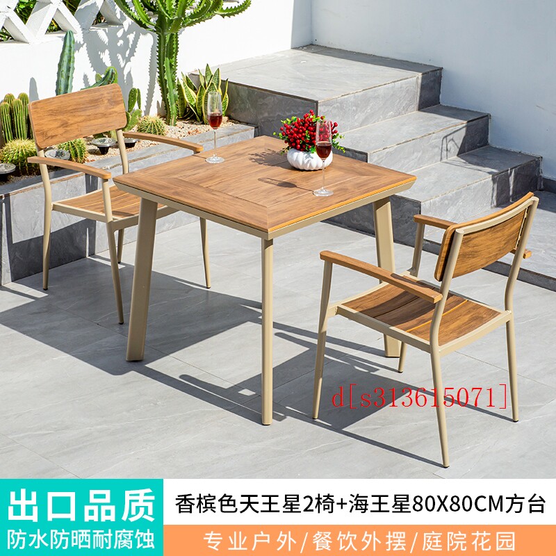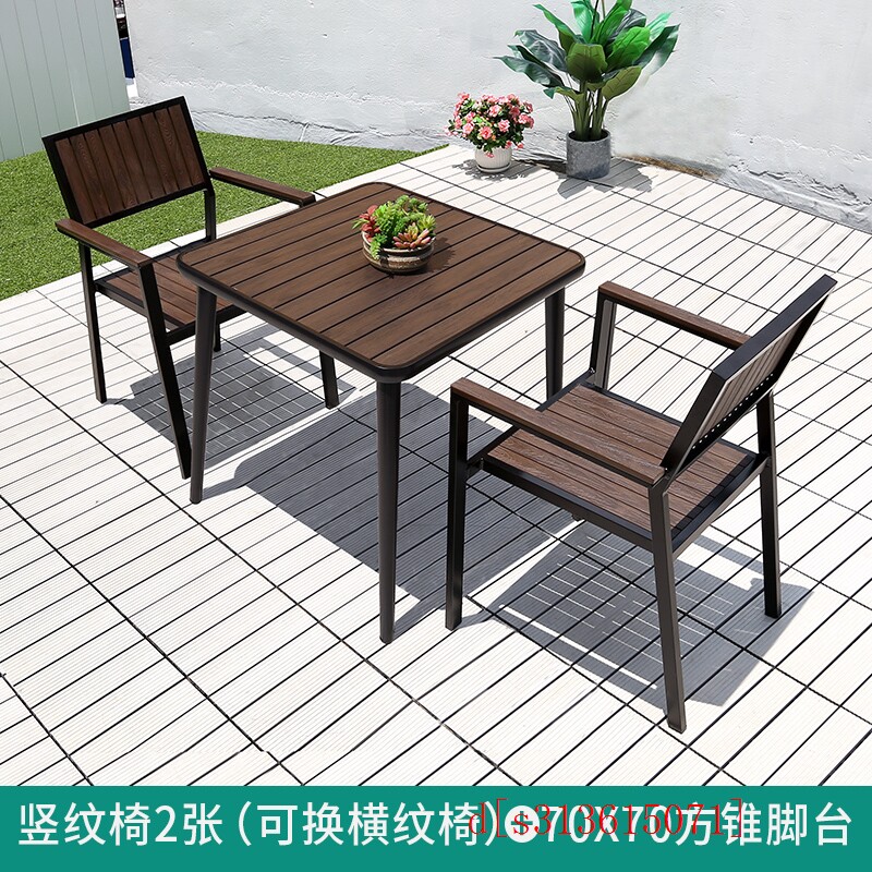 Balcony small table and chairs Three sets Composition Leisure anti-corrosive wood outdoor patio open tea table plastic wood outdoor table manufacturer-Taobao