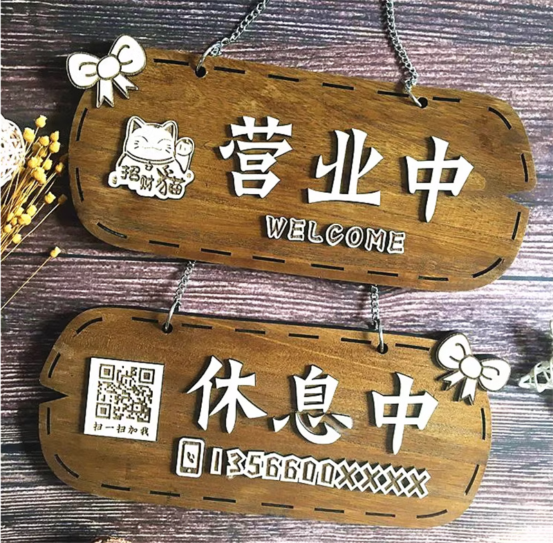Wooden business time is being listed in business Two-sided shop doorway welcome to the push door Please come in the prompt card-Taobao