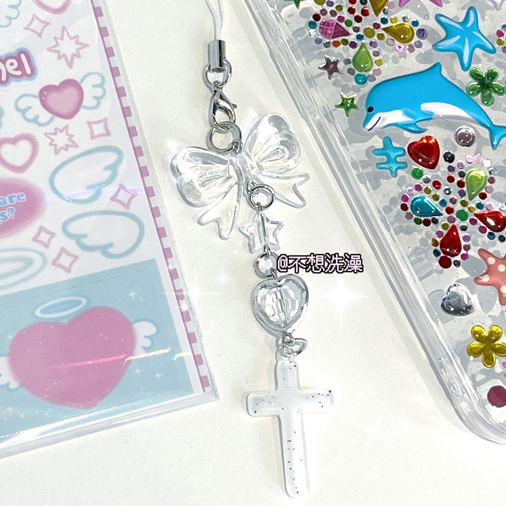 Japanese and Korean girls sweet ins transparent bow cross star mobile phone chain cute bag pendant versatile Y2K