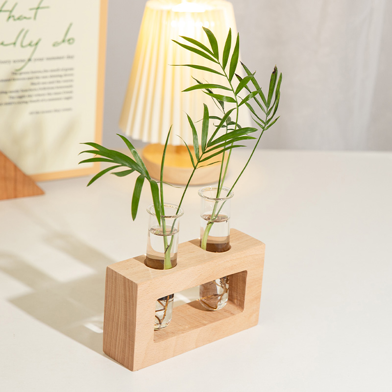 Creative Beech Wood Hollowed-out Glass Test Tube Vase Water Cultivation Container Dry Flower Square Small Florator Tabletop Small Pendulum-Taobao