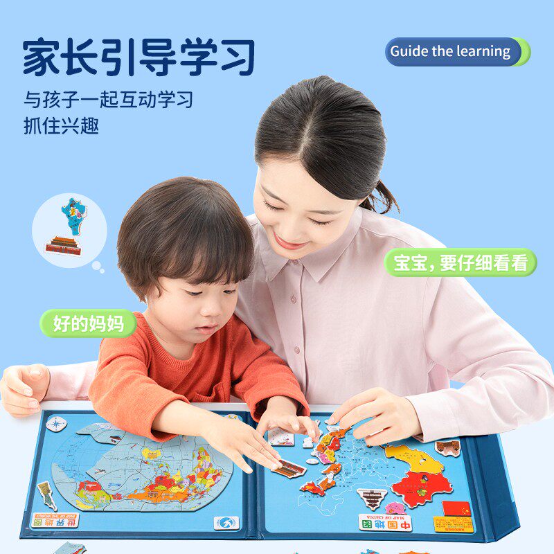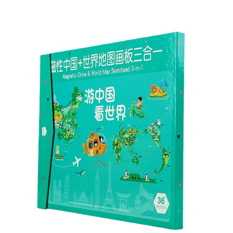 (Two-in-one Book Style) Magnetic China World Map-Blue (Three-in-one Book Style) Magnetic China World Map Drawing Board-Green Magnetic World Map Magnetic China Map
