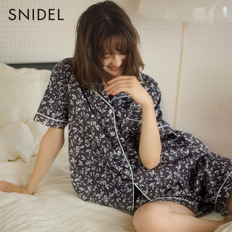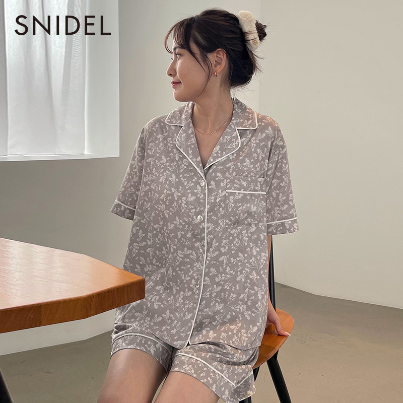 SNIDEL HOME2023 autumn winter new retro printed short sleeve loose in-home pyjamas SHFB234054 -Taobao
