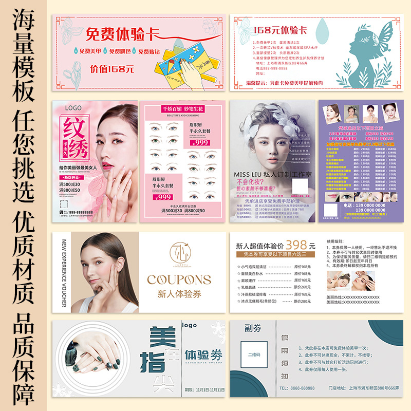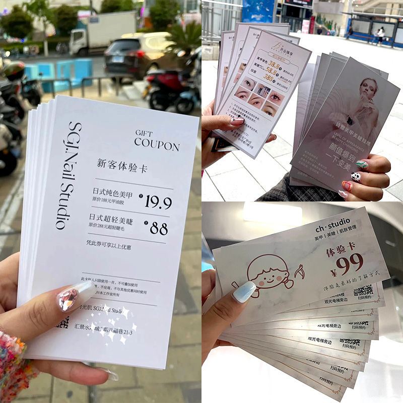 Beauty Salon Tutor Experience Card Custom Beauty Nail Shop Opening Flyer Advertising Single Page Invitation Card Design Textured Embroidered Gold Voucher Coupon Printed Skin Management Business Card Beauty Mascara promotional card-Taobao
