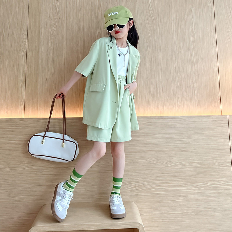 23 Girls Little Western suit suit Inlenwind parent-child thin suit Two sets CUHK Trendy Ocean Air Summer Dress-Taobao