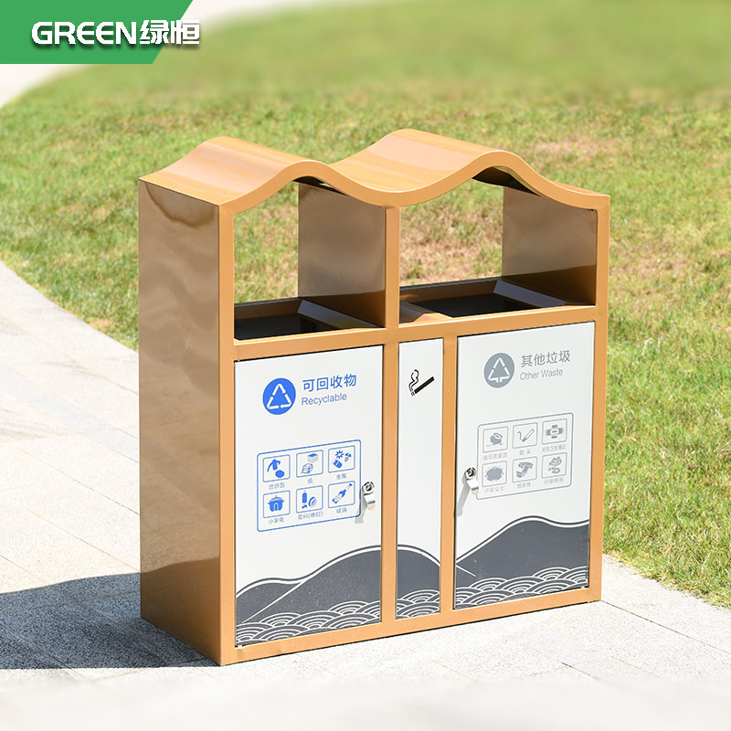 Green Hengshan Peak Scenic Spot Outdoor Trash Can Stainless Steel Metal Dustbin Outdoor Cell Property Sanitation Bin-Taobao