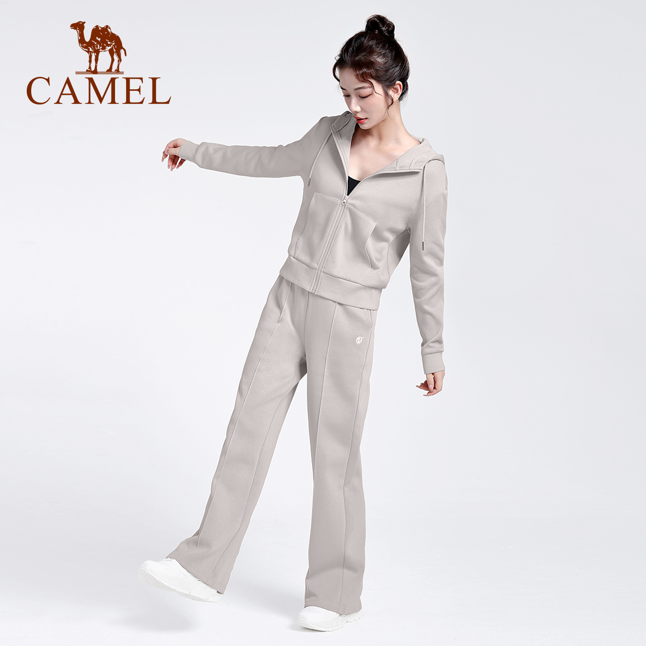 Camel yoga conserved autumn winter sports suit jacket jacket woman cardio-hoodie with cap running blouse fitness suit morning running suit-Taobao