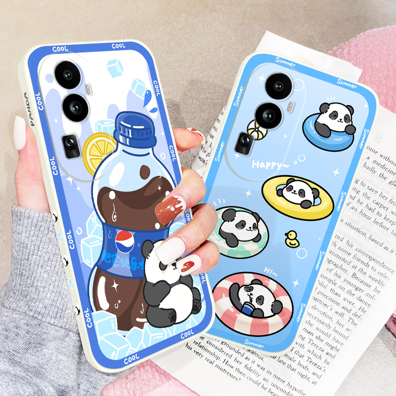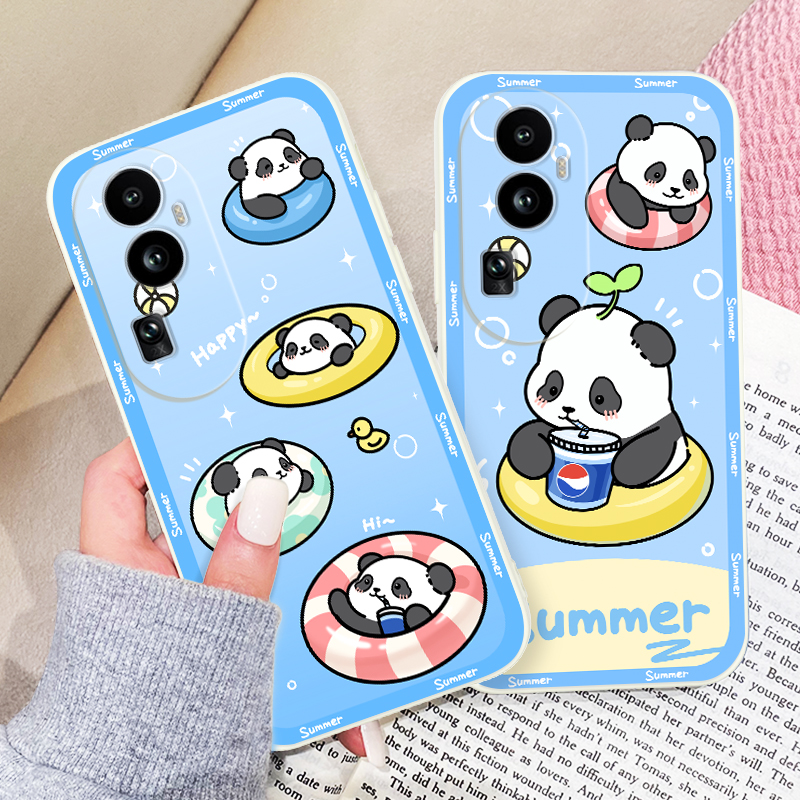 Summer swimming panda opporeno10 mobile phone shell reno9 8 7pro cute Reno6 liquid silicone reno5pro ultra-thin anti-fall remo4