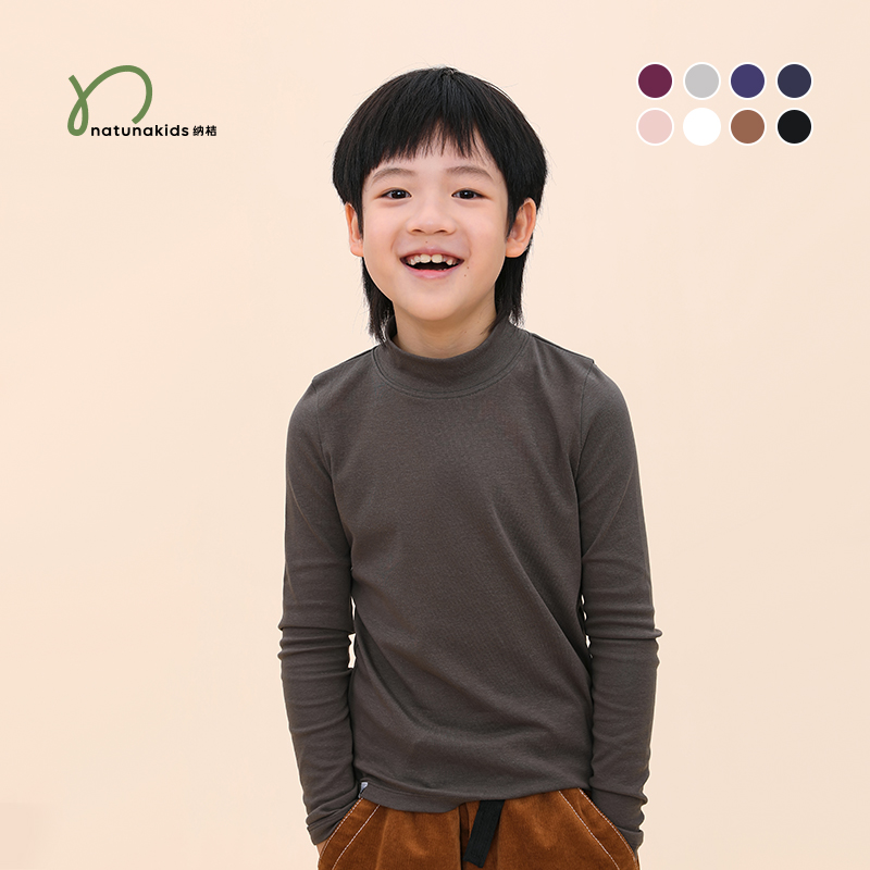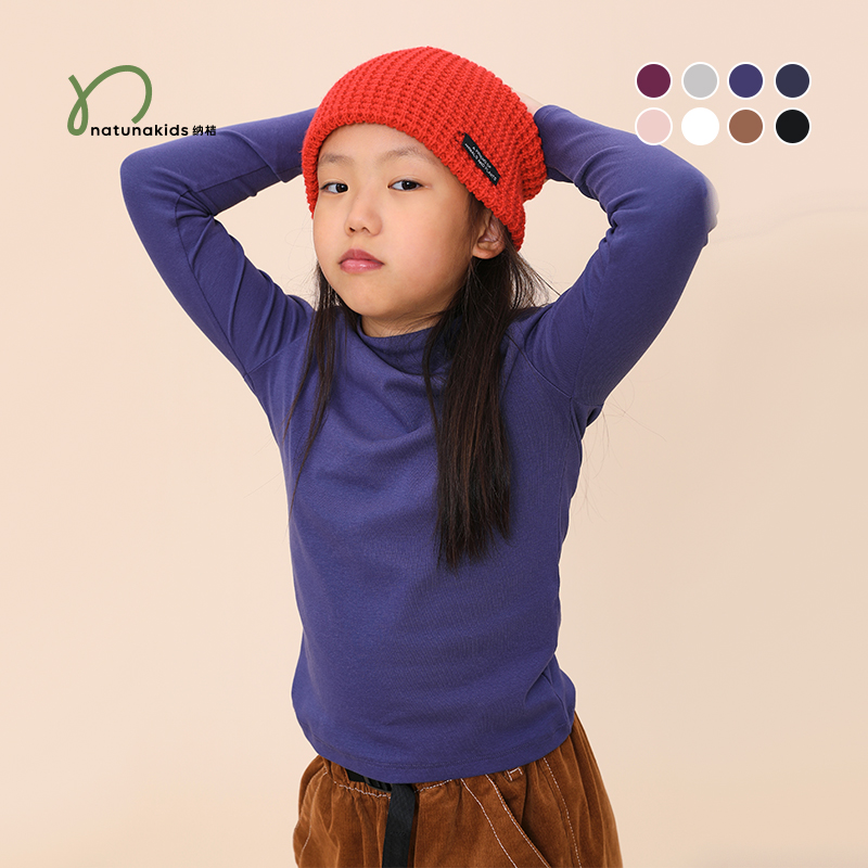 (Capsule) Ntangerine Parent-child children's male and female children autummy winter combed cotton Rhodes Semi-high collar Long sleeves elastic undershirt-Taobao
