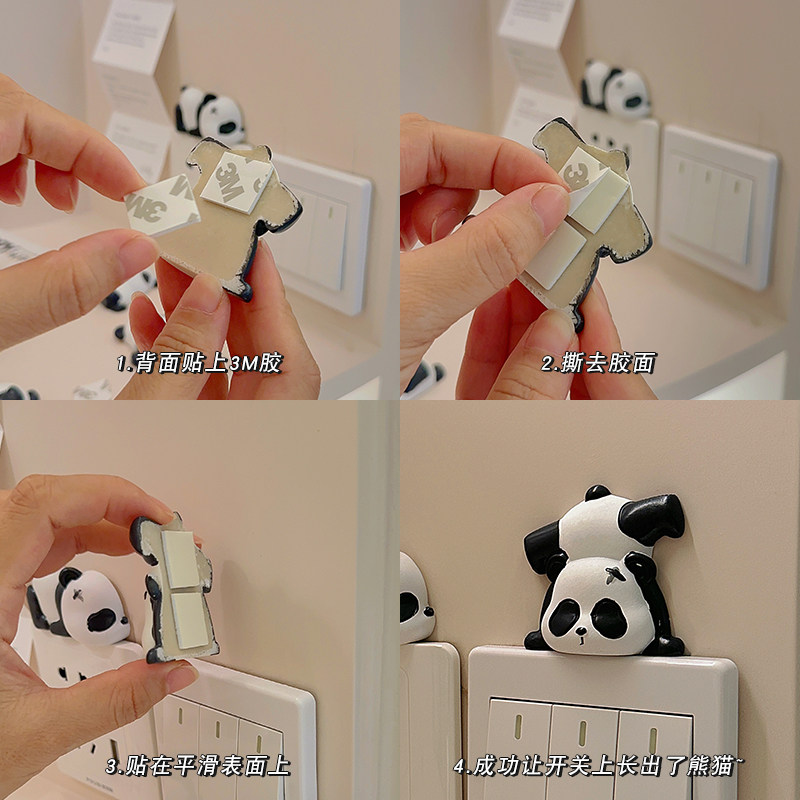 Creative Cartoon Panda Switch Patch Wall Sticker Protective Sleeve Home Cute 3d Solid Frame Cover Ugly Socket Trim sleeve-Taobao