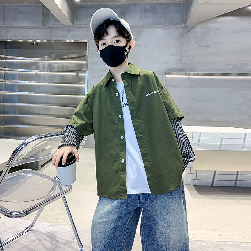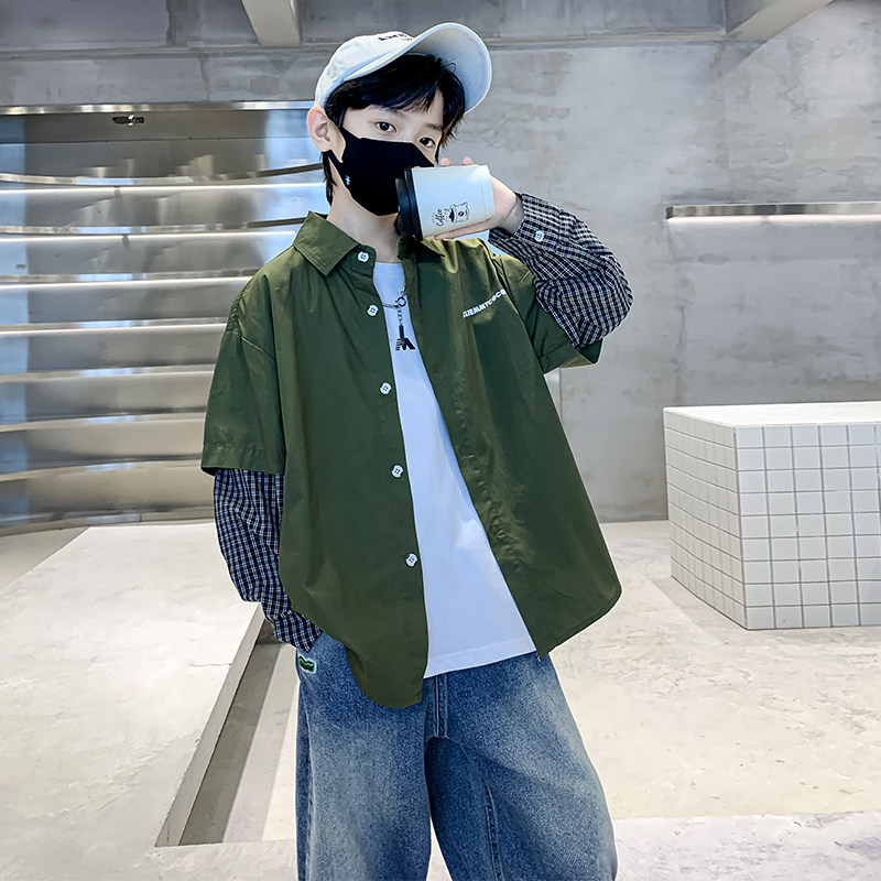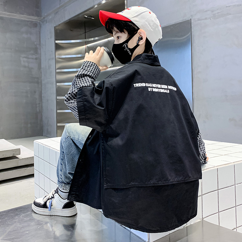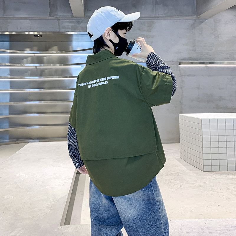 Children Shirt Boy Long Sleeve 2023 Autumn Clothing New Plaid Splicing Fake Two CUHK Child Labor Clothes Loose Lining-Taobao
