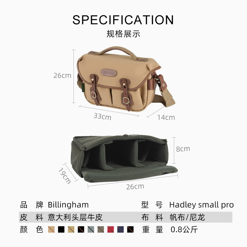 Billingham Platinum Han Photographic Bag Hadley Small Pro Camera Bag Photography Microsheet Anti-Skew Cross Single Shoulder Bag Commute Suitable for Leica HasuSony A7