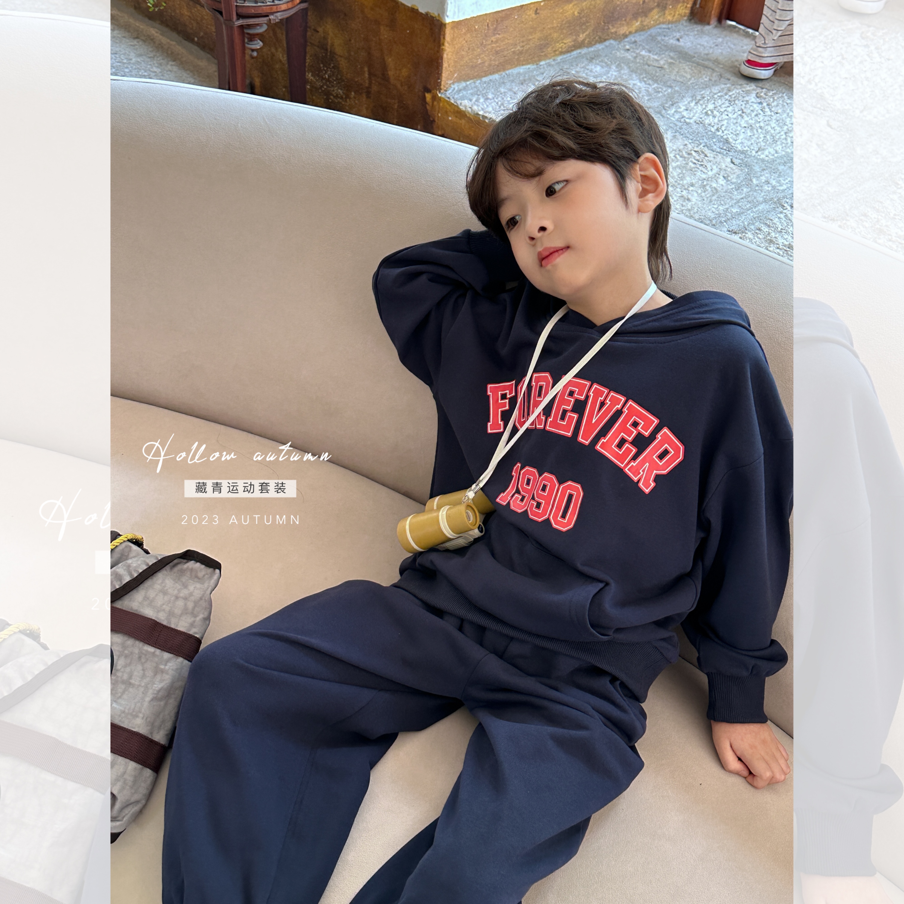 Shrimp sauce linen boy necropolis suit Spring autumn season 2023 new baby even cap foreign air children sports pants tide-Taobao