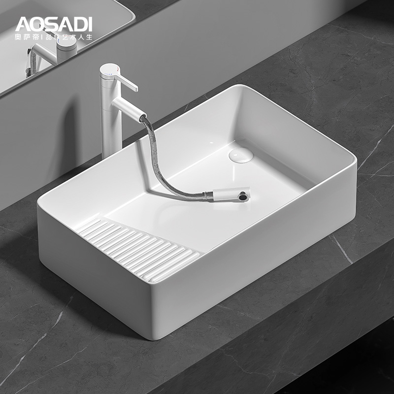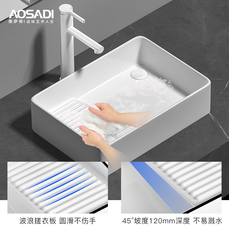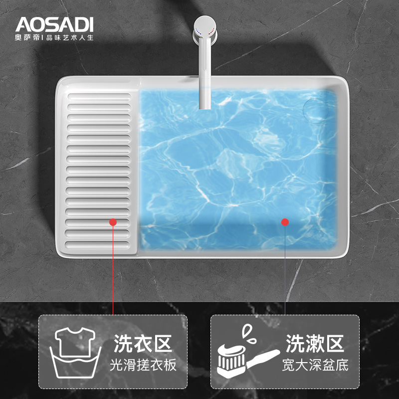 Ossatti Washing Machine Terrace Basin Side Sewer Balcony Laundry Basin With Washboard Ceramic Handwashing Laundry Pool 9015-Taobao