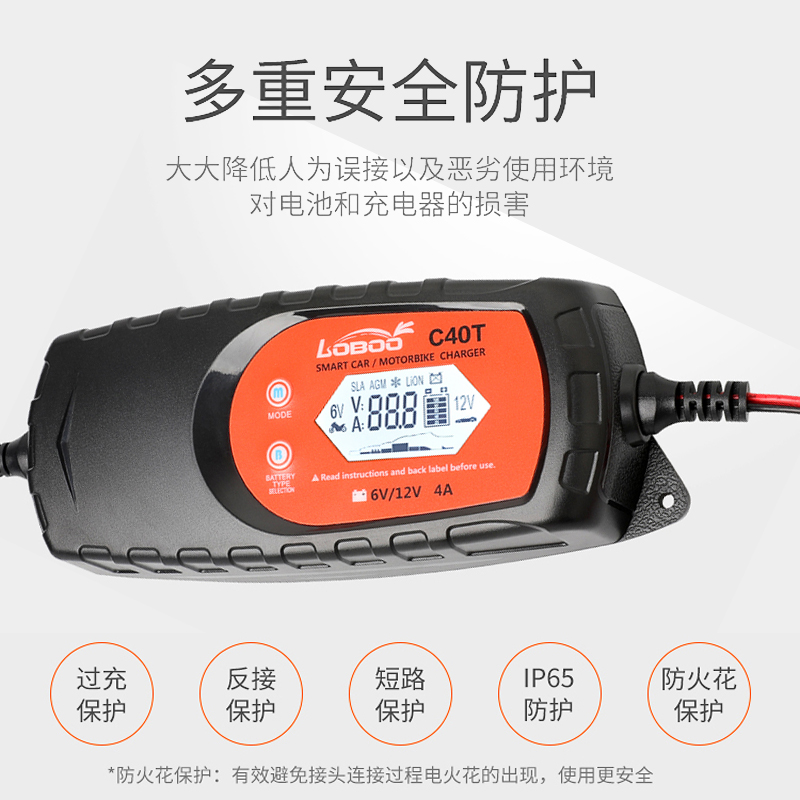 LOBOO Radish C40T Motorcycle Battery Charger Car Lead-acid Lithium Battery Fast Charging Smart Repair Supplement-Taobao
