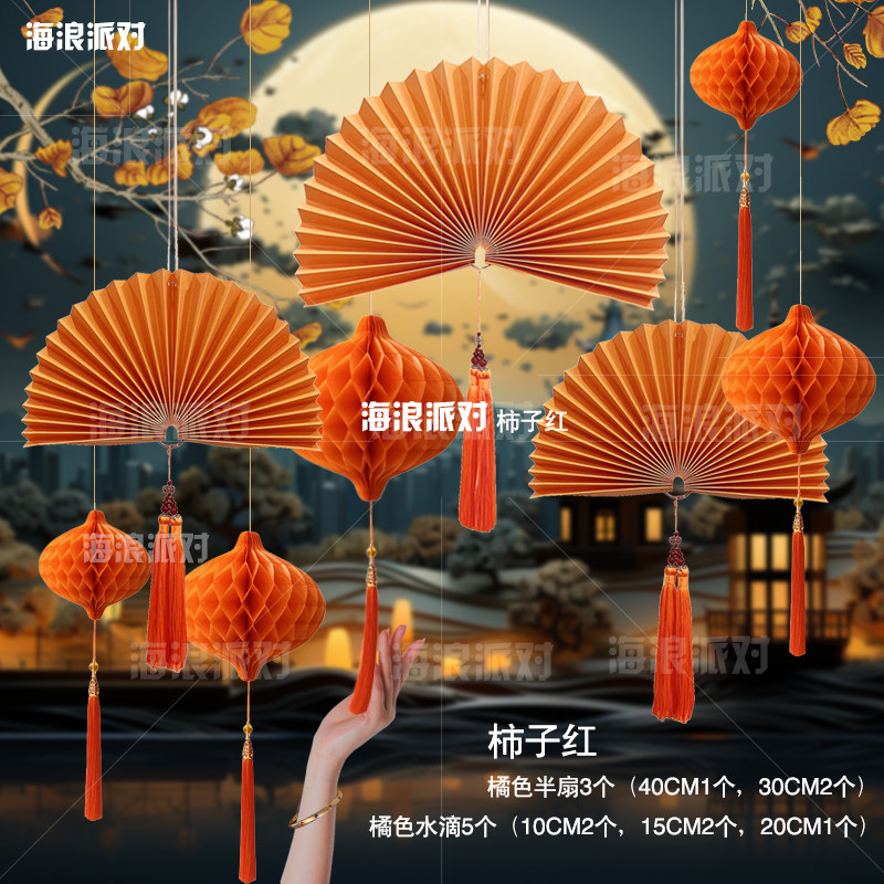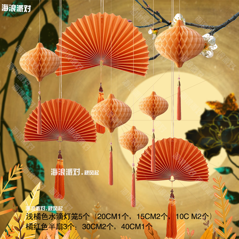 Autumn Thanksgiving decoration arranged with ancient wind lanterns New Chinese background Ceiling Shops Shop Window Pendant Atmosphere Dragon Year-Taobao