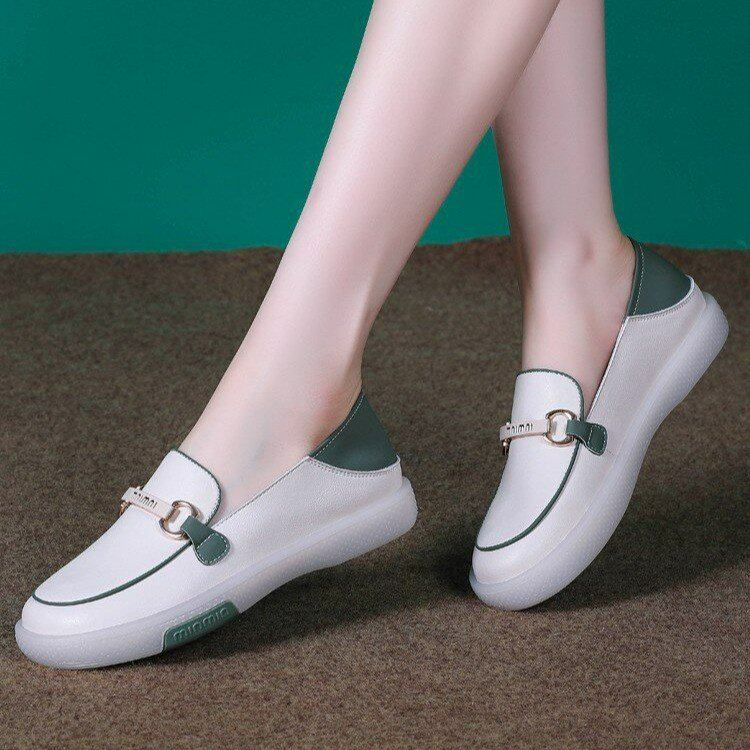 One Foot Pedal Summer 2023 New Small White Shoes Casual Lady Fashion 100 Hitch Genuine Leather Soft Bottom Lefu Shoes Dongle Shoes-Taobao