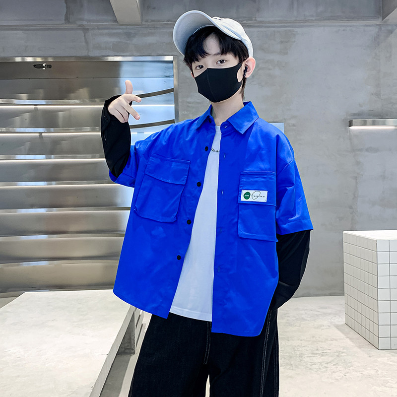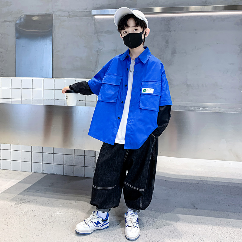 Boy shirt slim fit fall jacket long sleeves 2023 new children's autumn-style shirt capsized for spring and autumn casual children's clothing-Taobao