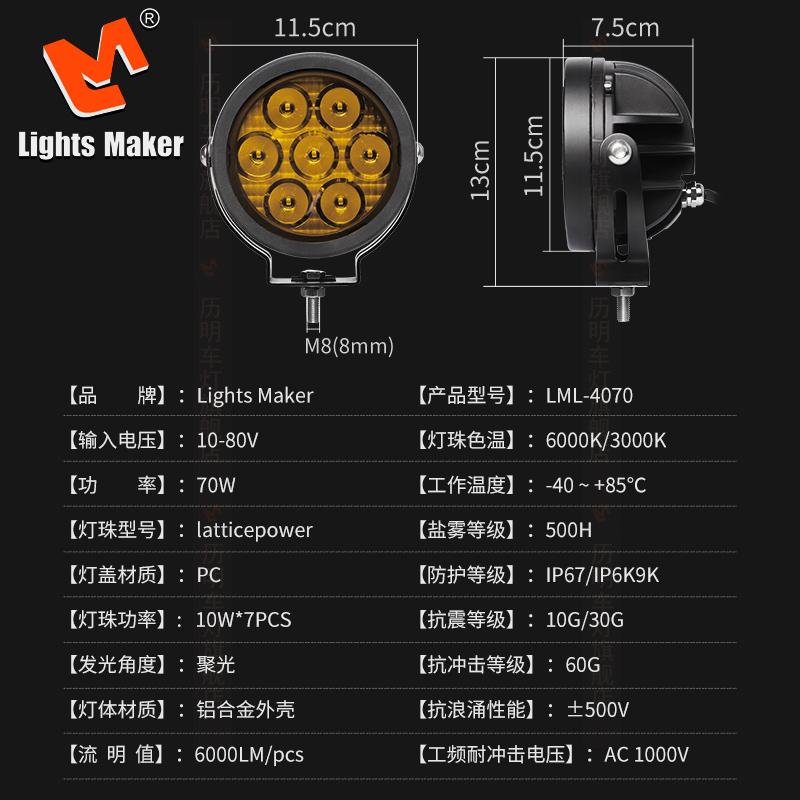 4 5 inch 70W-single price without wire group] 4 5 inch 70W-pair with motorcycle horn bursting line group * 1 round bar bracket * 2 white light 3 5-inch 30W-for-fit