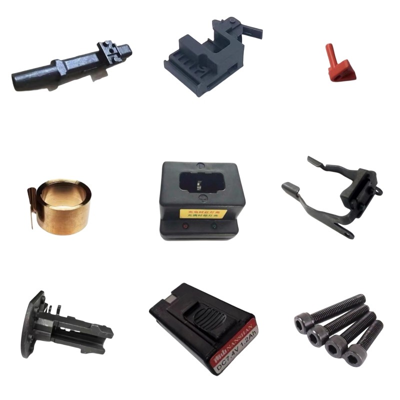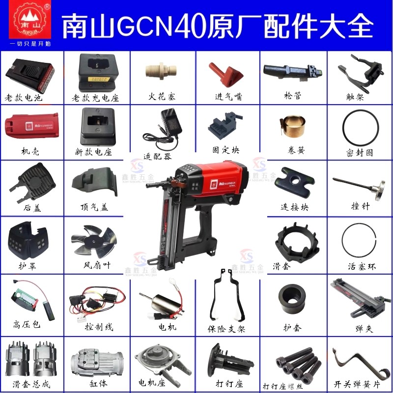 40 intake nozzle 5 piston rings pair (firing pin used) 40 new firing pin (without ring) One 40 new firing pin with ring 40 coil spring One South Mountain 40 Push Nail seat One 40 cartridge clip assembly One
