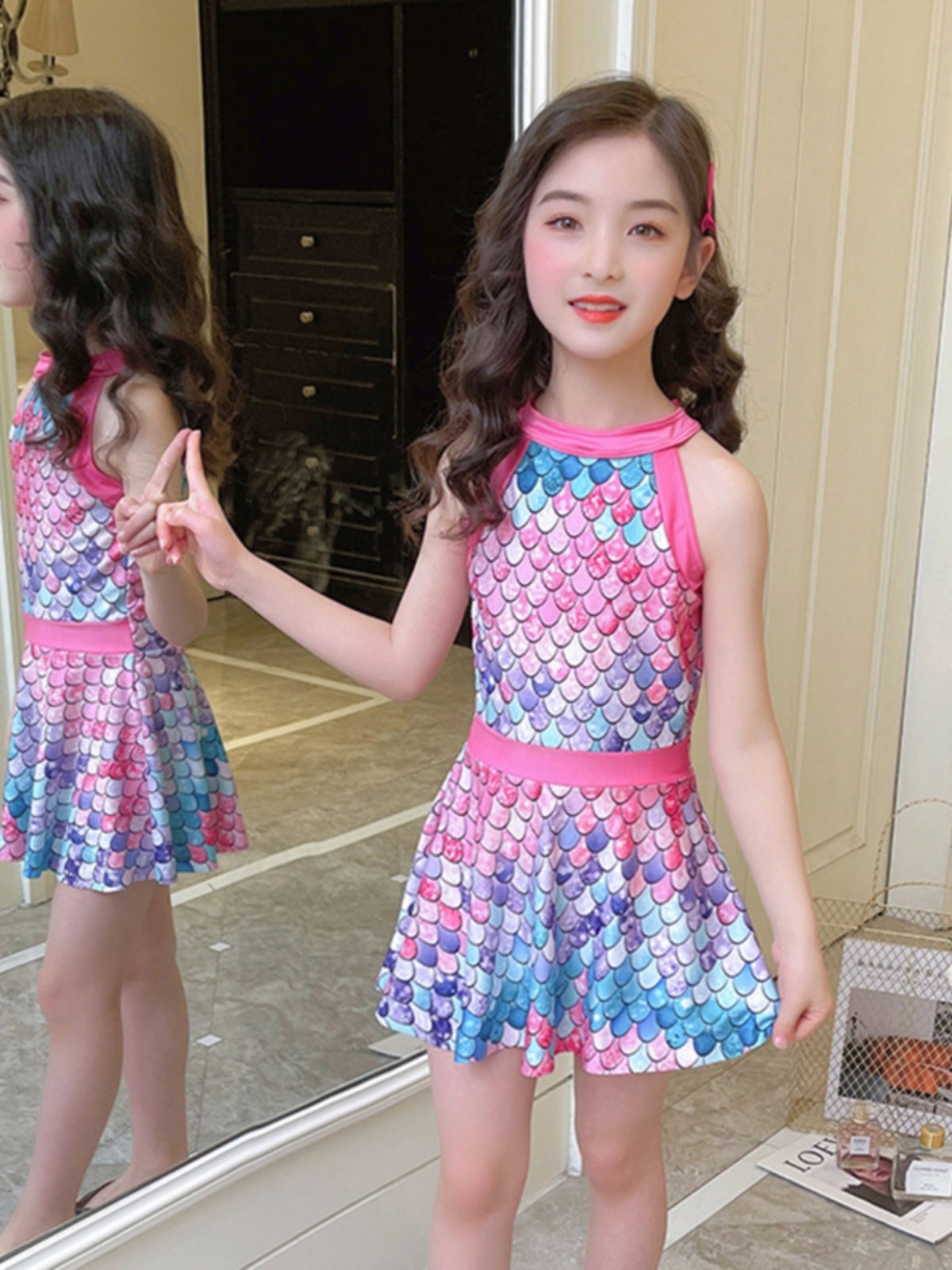 Children's swimsuit girl girl girl conjoined dress conservative little girl CUHK Boy Korea Princess cute ocean swimsuit