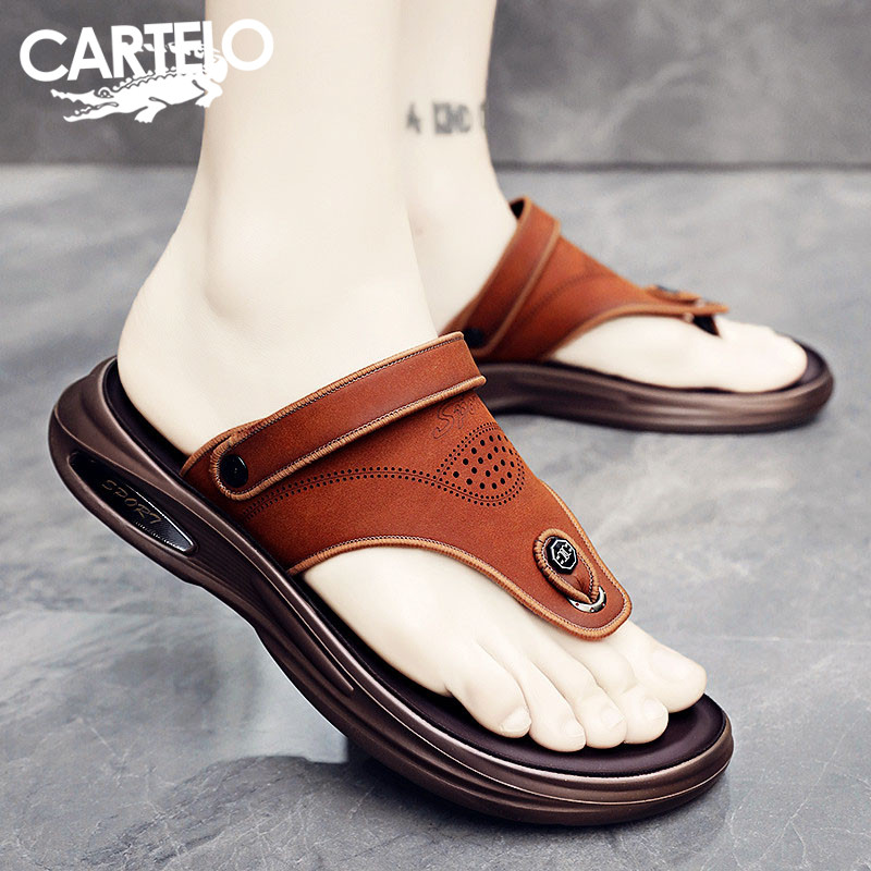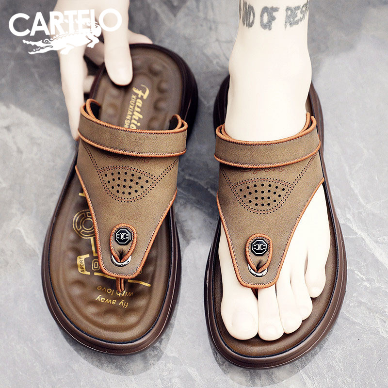 Avocado Leather Sandal Sandals Men's 2023 New High-end Genuine Leather Beach Shoes Men's Dual-use Clip Feet Slippers Men's Summer-Taobao