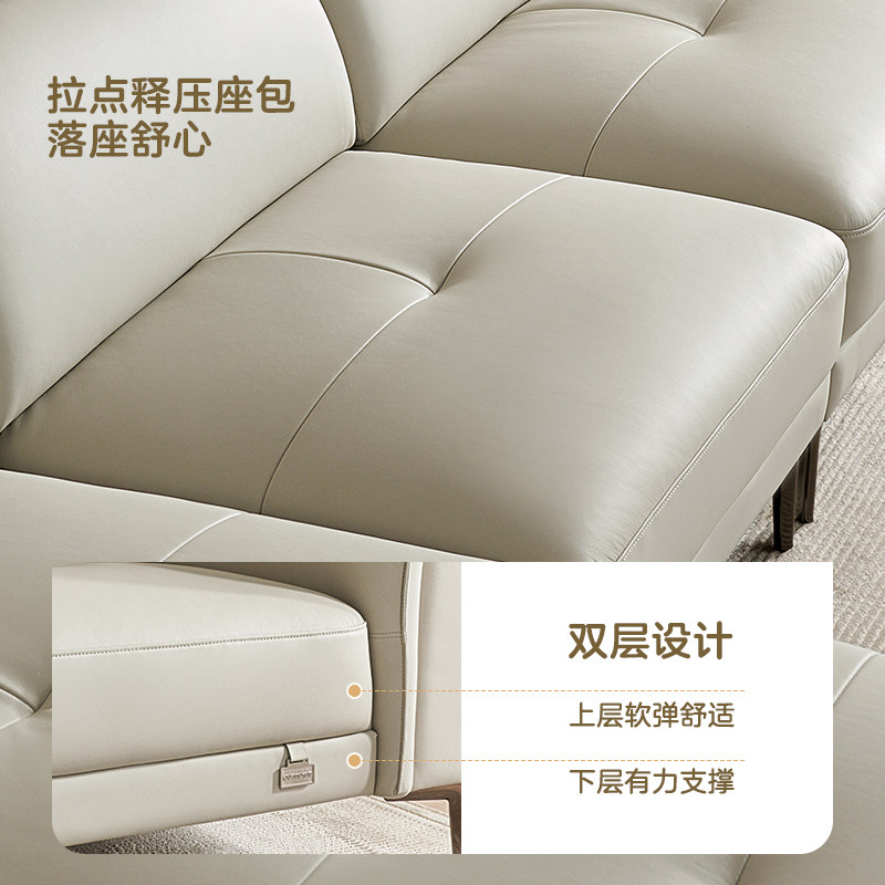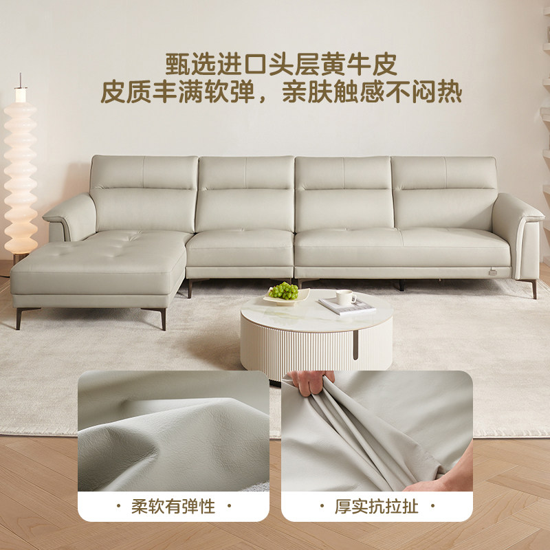 Full Friend Home Cream Wind Real Leather Sofa Home Living Room 2023 New Big Family Corner Sofa 112009-Taobao