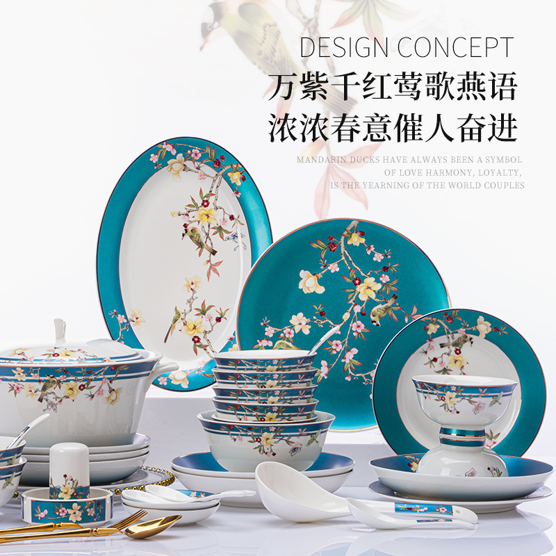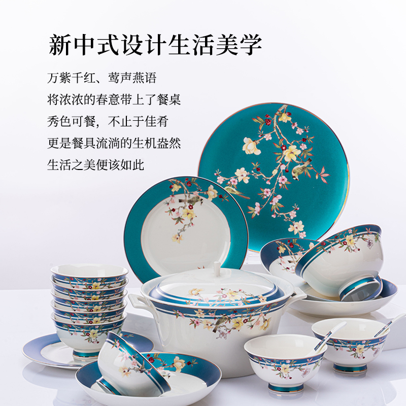 Bowl Dish Suit Home Chinese Light Luxury 2022 Jingdezhen Ceramic Bone China porcelain Joe accommodate for cutlery bowls tray chopsticks Composition 1020-Taobao