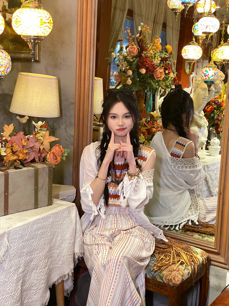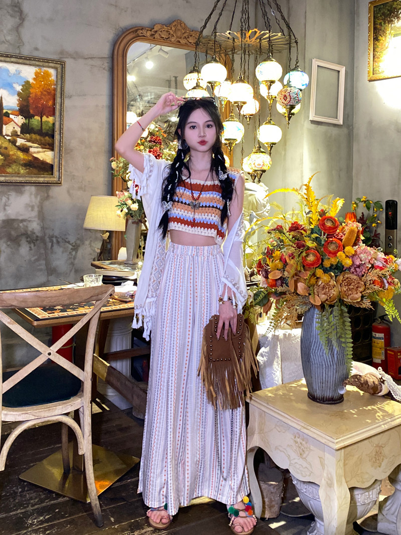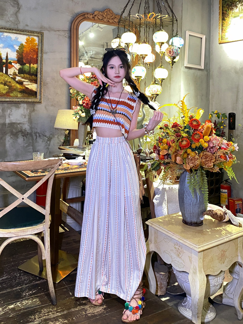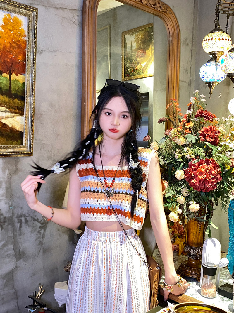 Super-looking ~ Bohemian sweet and beautiful striped knit hollowed-out harness travel holiday wearing a sleeveless blouse vest-Taobao