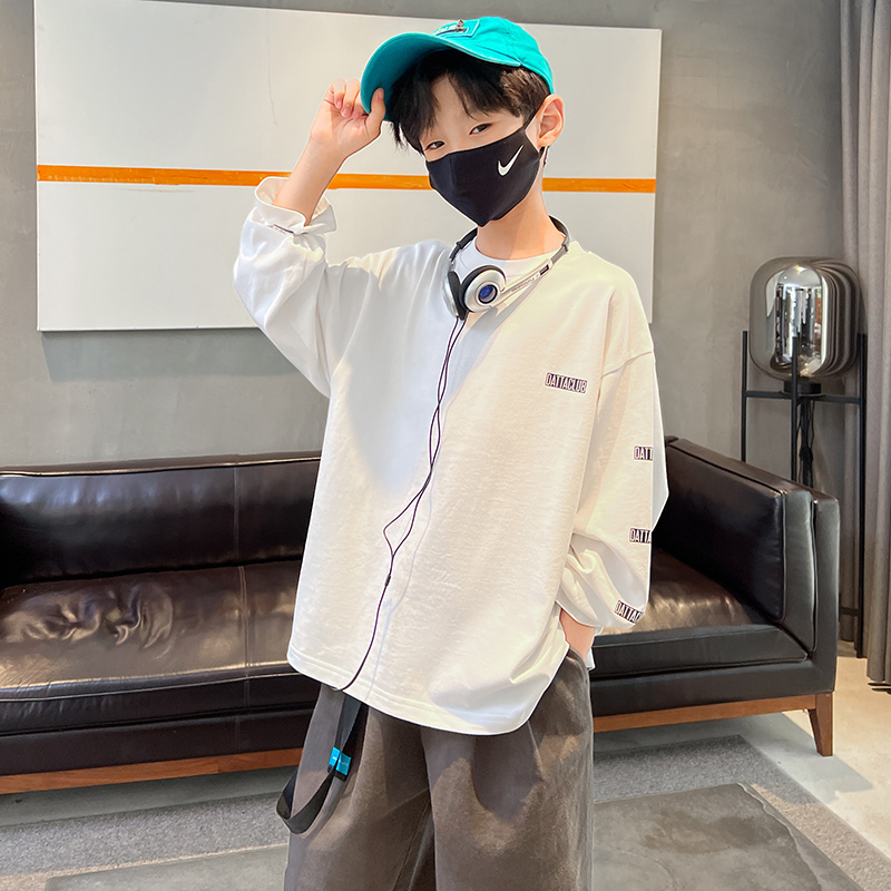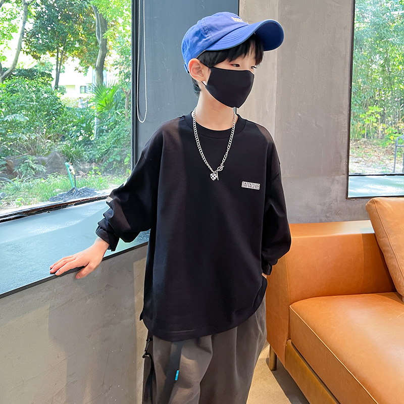 Boy Spring-autumn-style pure cotton long sleeve T-shirt Chauded autumn children's clothes autumn clothes 2023 new CUHK Tong Bottoms Shirts-Taobao