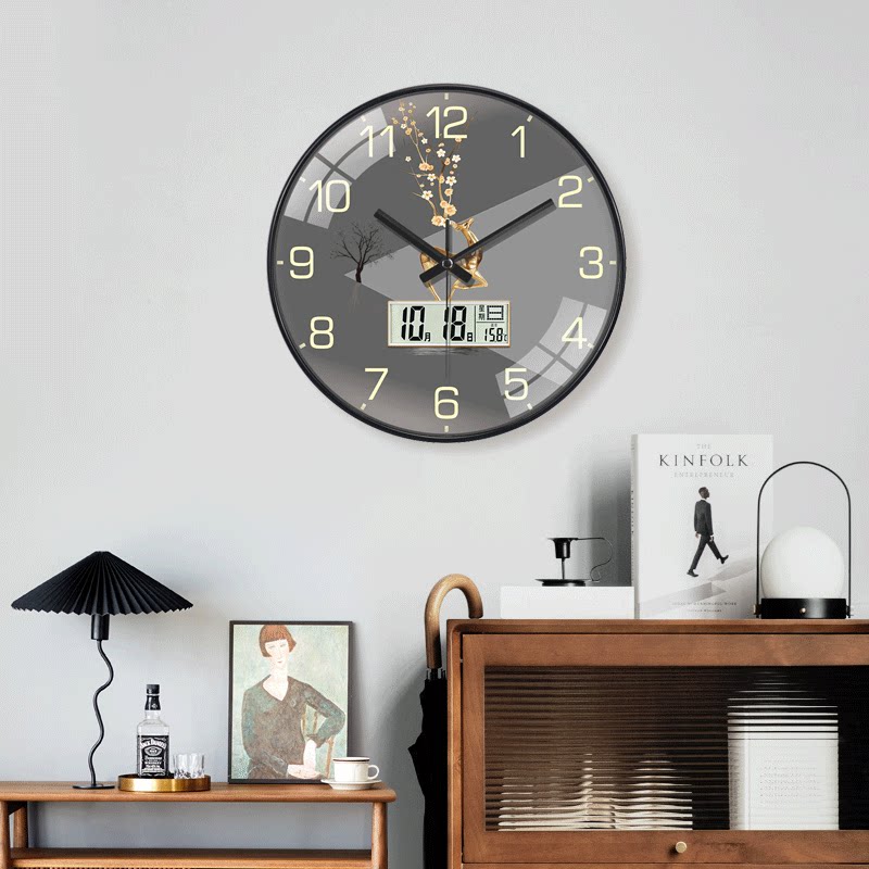 Clock Hanging Clock Living Room With Calendar Home Fashion Brief Current Representative Hung Wall 2023 New Silent Clock Light Extravagant-Taobao